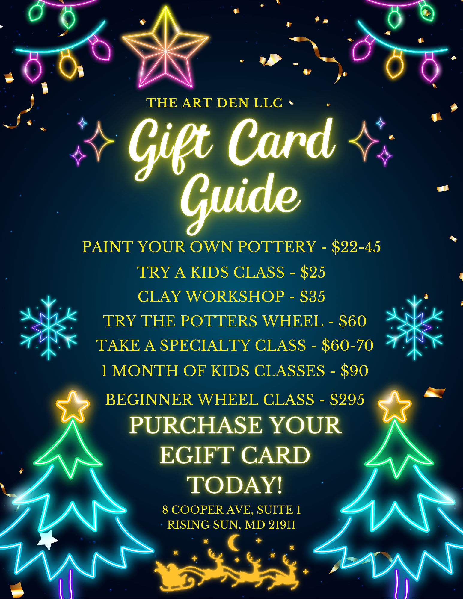 Yes! We do offer gift cards and we can deliver them digitally! Click here to purchase or stop by the studio to get a hard copy.